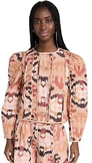 - Ikat pattern and corded trim