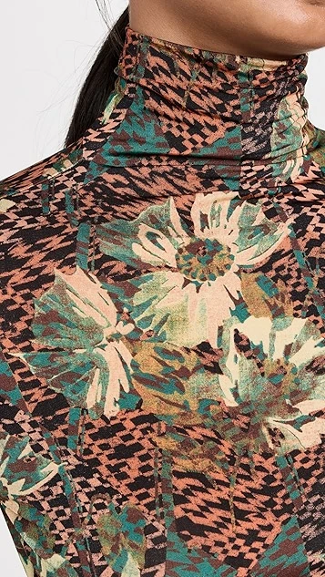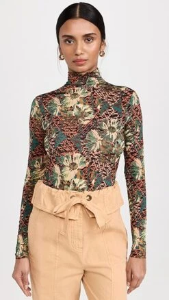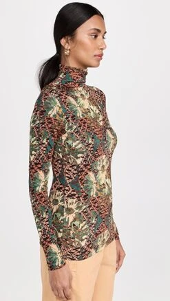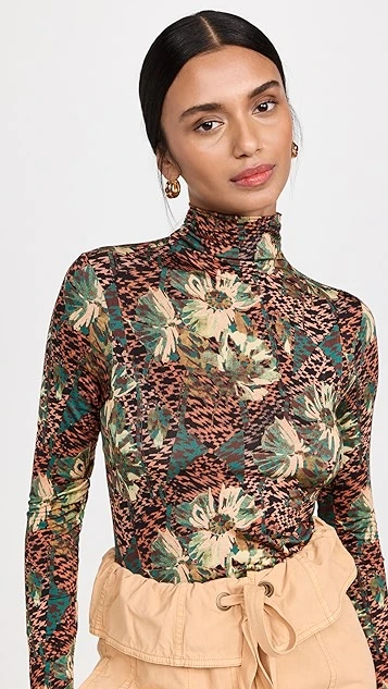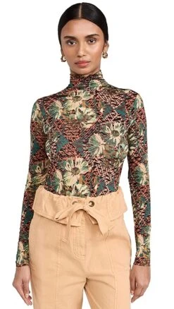 A supple and lightweight Ulla Johnson turtleneck pullover, featuring painterly flowers set against a dizzyingly patterned background. The slim fit of this top makes it a natural match for a pair of the label’s wide-leg trousers.