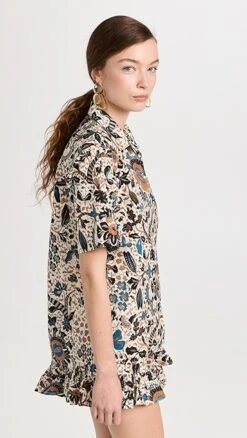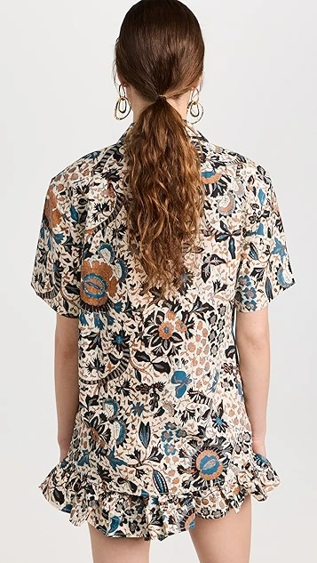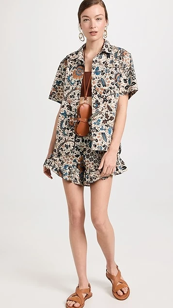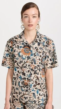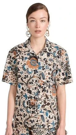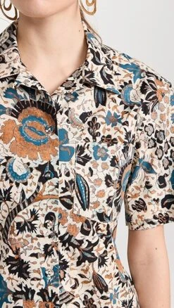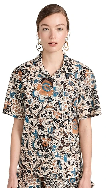 A captivating floral print details this crisp cotton Ulla Johnson button down shirt, which is designed with a camp collar for a touch of vintage-inspired style.