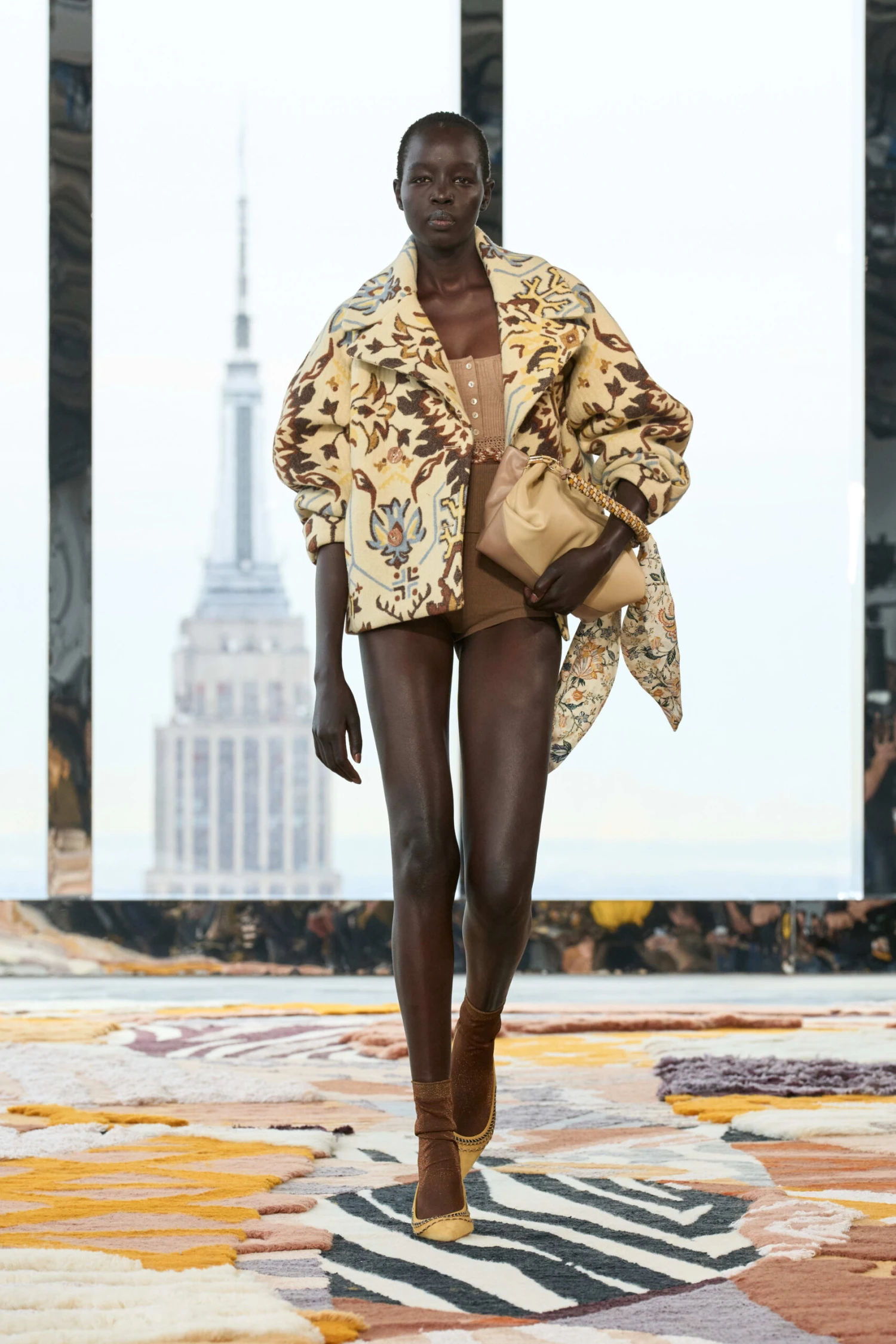 As featured in Look 32 of our Autumn/Winter ’23 Runway Show, the Dorothea Jacket is crafted from Italian-made wool and cashmere with vibrant yellow, blue, and brown hues. This super-plush cropped jacket features oversized lapels and slit pockets. It’s finished with beautiful tonal buttons.
