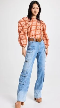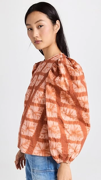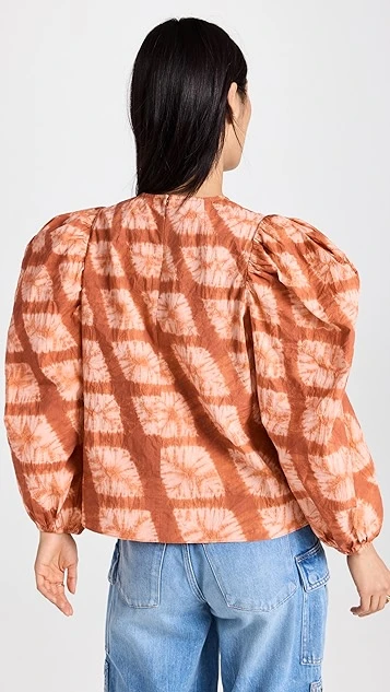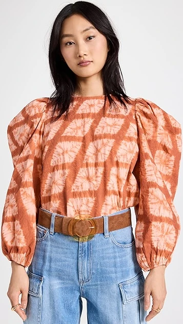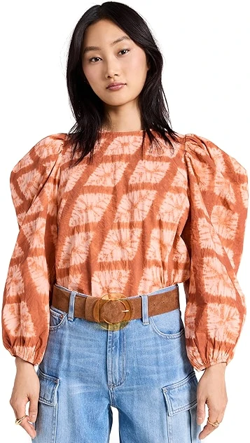 Exaggerated proportions and tie-dye patterning draw the eye to this Ulla Johnson top, which is crafted from the label’s signature crisp cotton. Just tuck this piece into high-rise jeans and your weekend look will be complete.
