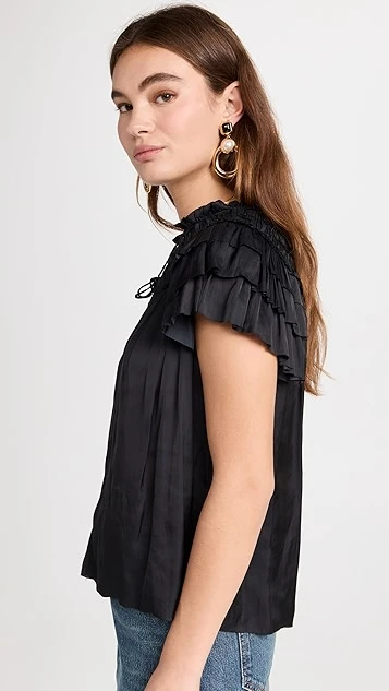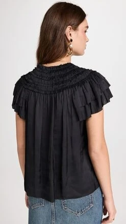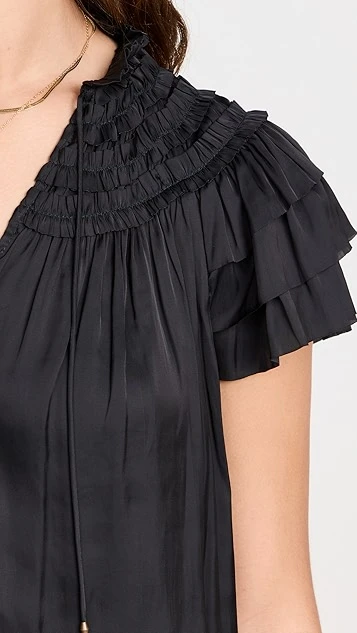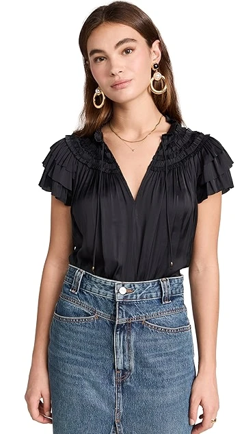 Cut from airy silk charmeuse and featuring tiered butterfly sleeves and ruffled trim, this Ulla Johnson top is a romantic version of an everyday blouse. Wear yours with a denim skirt and accessorize with gold-tone jewelry.