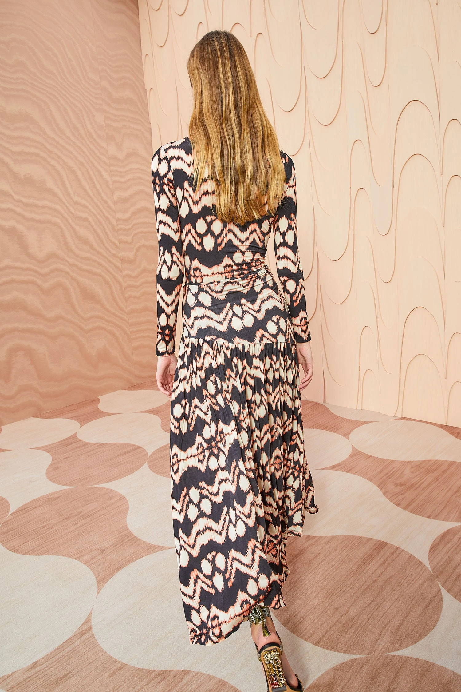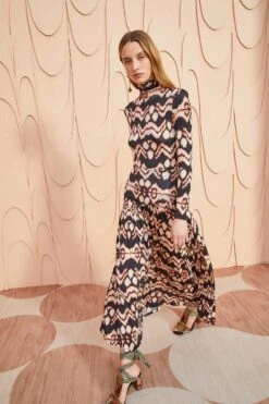 Our signature tricot jersey returns for Autumn/Winter ‘23 in a gorgeous painted ikat motif. This midi-length skirt features a vibrant cream and black colorway and has light gathers that create beautiful volume.