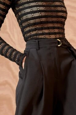 The Lydia Pant is made from luxurious satin back crepe which features a beautiful, flowing drape. These black trousers are designed in a high-waist wide-leg silhouette and are finished with pockets and a removable belt.