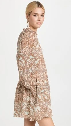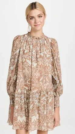 Relaxed yet romantic, this lightweight Ulla Johnson dress is detailed with intricate patterning in a muted color scheme, as well as flecks of metallic thread. Puff shoulders accentuate the gently voluminous look of the silhouette. To round out your outfit, add a favorite pair of suede booties.