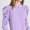 - High neckline and long sleeves with smocked elastic cuffs
