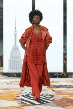 As featured in Look 5 of our Autumn/Winter ’23 Runway Show, the Marlowe Coat is made from a lustrous waxed leather with a slightly crackled surface texture. This gorgeous sierra brown trench coat features a nipped waist and classic utilitarian-style details.