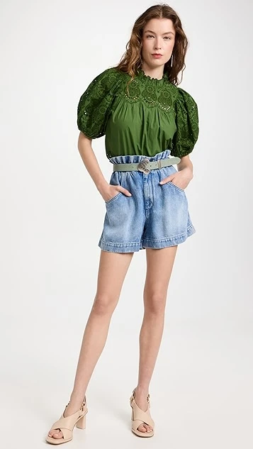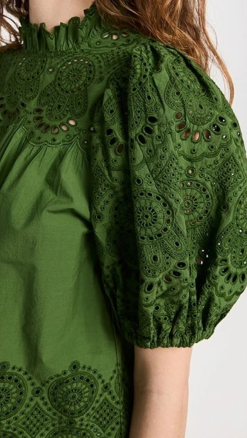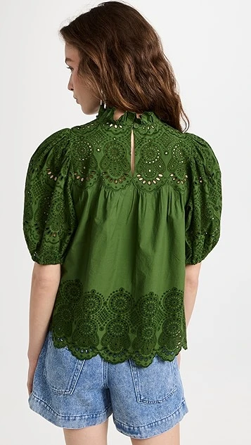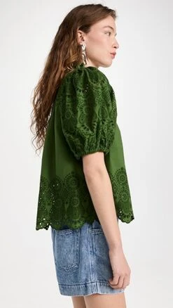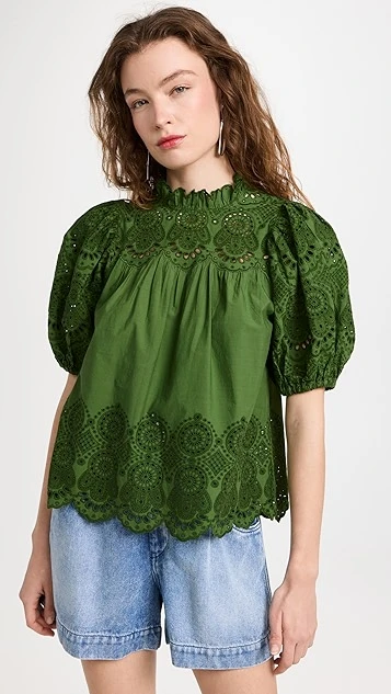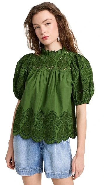 Make any outfit feel occasion-worthy with this romantically proportioned Ulla Johnson top, which is detailed with intricate eyelet patterning and imbued with a rich shade of green.