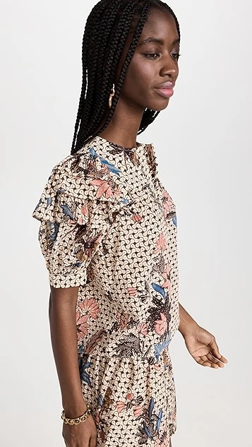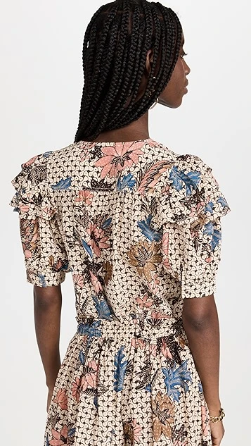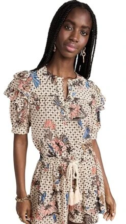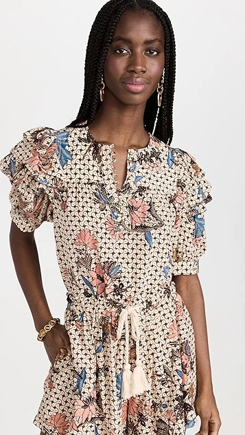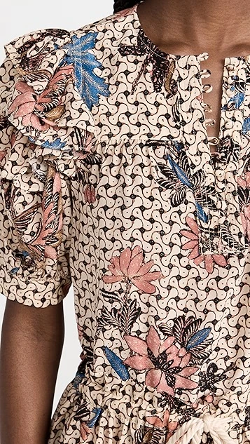 - Gathered yoke and ruffle trim