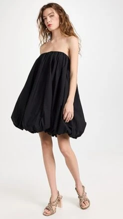 A fresh take on strapless style, this Ulla Johnson dress features a voluminous A-line cut that finishes with a bubble hem. Monochrome fabric keeps the focus on the uniqueness of this silhouette. Complete your outfit with statement earrings and the heels of your choice.