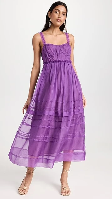 - Bustier-inspired bodice with boned side seams