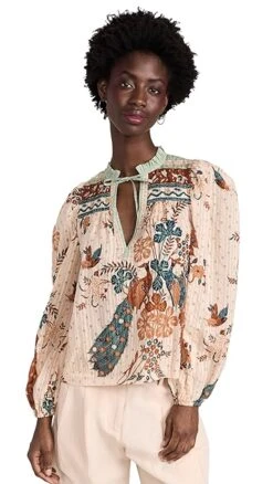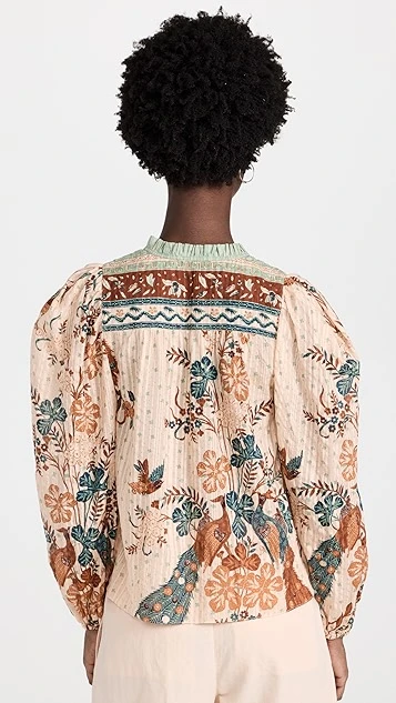 A beautiful Ulla Johnson top, rendered in a lightweight cotton blend and detailed with an intricate tapestry print. Wear this blouse with high rise trousers and complete your look with flat sandals.