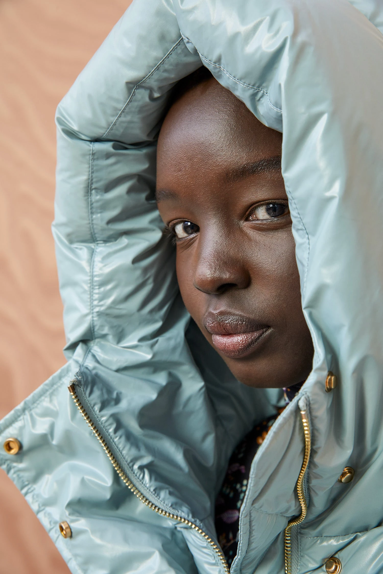 A balance between luxury and the sportif, our Rhodes Jacket is crafted from lacquered nylon with a down filling for maximum warmth and is a beautiful slate-blue. This hooded puffer silhouette features long sleeves that you can remove to create an entirely new silhouette, and a drawstring waist for a cinched look. It fastens with zip and snap button closures.