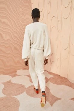 The Rory Pant is made from our ultra-soft fleece, a luxurious blend of bamboo and organic cotton. These pants in a neutral cream hue feature a drawstring waist, front and back patch pockets, and ribbed cuffs for elegant definition.Â