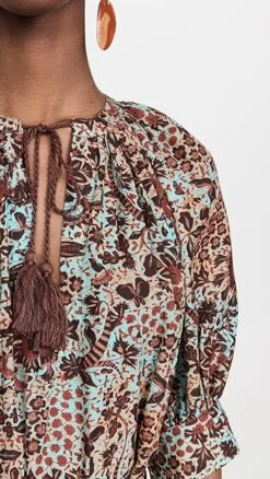 - Split neckline with braided tassel tie