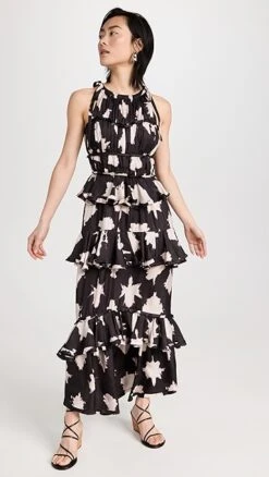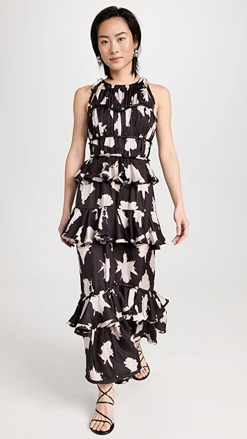 - Tiered flouce skirt with raw edges