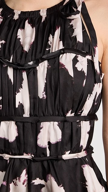 - Shirred bodice with pleated scoop neckline