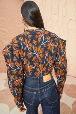 A classic Ulla Johnson silhouette, the Twyla Pullover is richly knitted with extrafine merino wool and other natural fibers that infuse it with a subtle texture. This blue crewneck top is adorned with swirling orange, brown, and pink botanicals and has beautifully puffed sleeves.